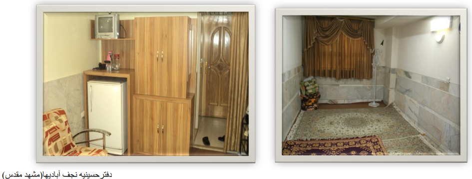 امکانات داخل اتاقهای بدون تخت طبقه اول ودوم حسینیه شامل سرویس بهداشتی وحمام، تلویزیون ،تلفن ، فرش ،پتو،بالش، ملحفه و ،فلاکس چایی، وسایل چایی.